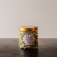 Corn oil, isomalt, pistachio, corn starch, rice flour, vegan butter (soy lecithin), rice puff (unsweetened), salt, baking soda